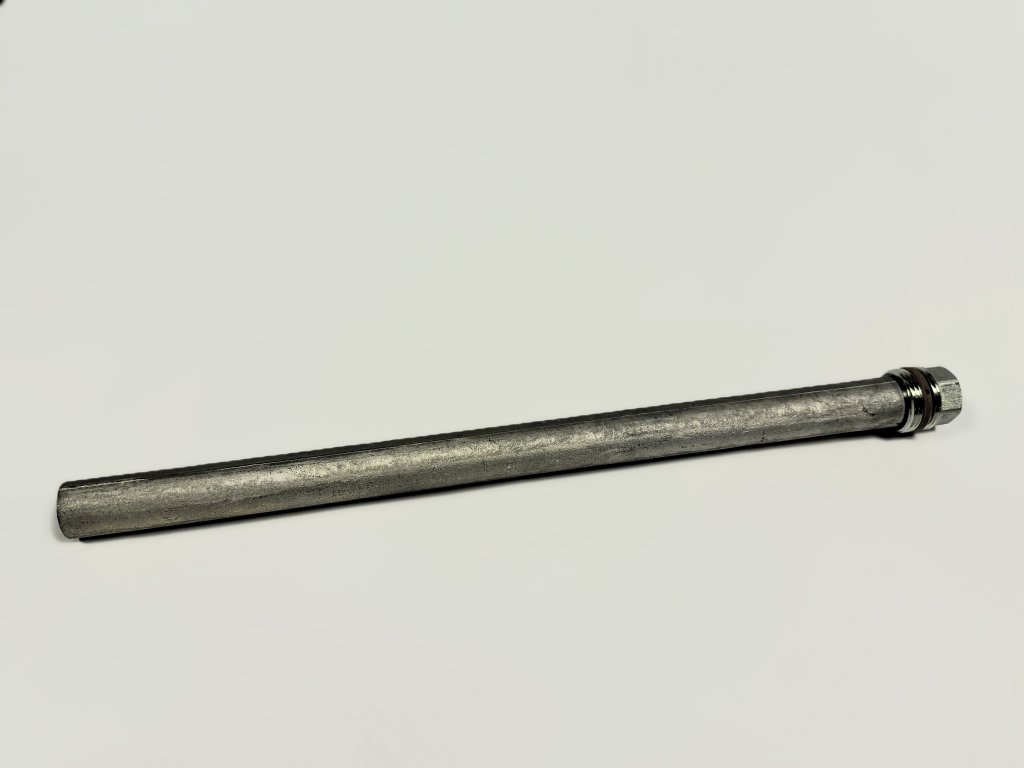 Hořčíková anoda zajišťuje aktivní antikorozní ochranu vnitřní smaltované nádrže. Pracuje na principu obětované anody – postupně se rozpouští, čímž zabraňuje korozi kovových stěn zásobníku a prodlužuje životnost vašeho ohřívače. Vlivem kvality vody a frekvence používání dochází k postupnému opotřebení anody, proto se doporučuje její pravidelná kontrola minimálně jednou ročně a včasná výměna.