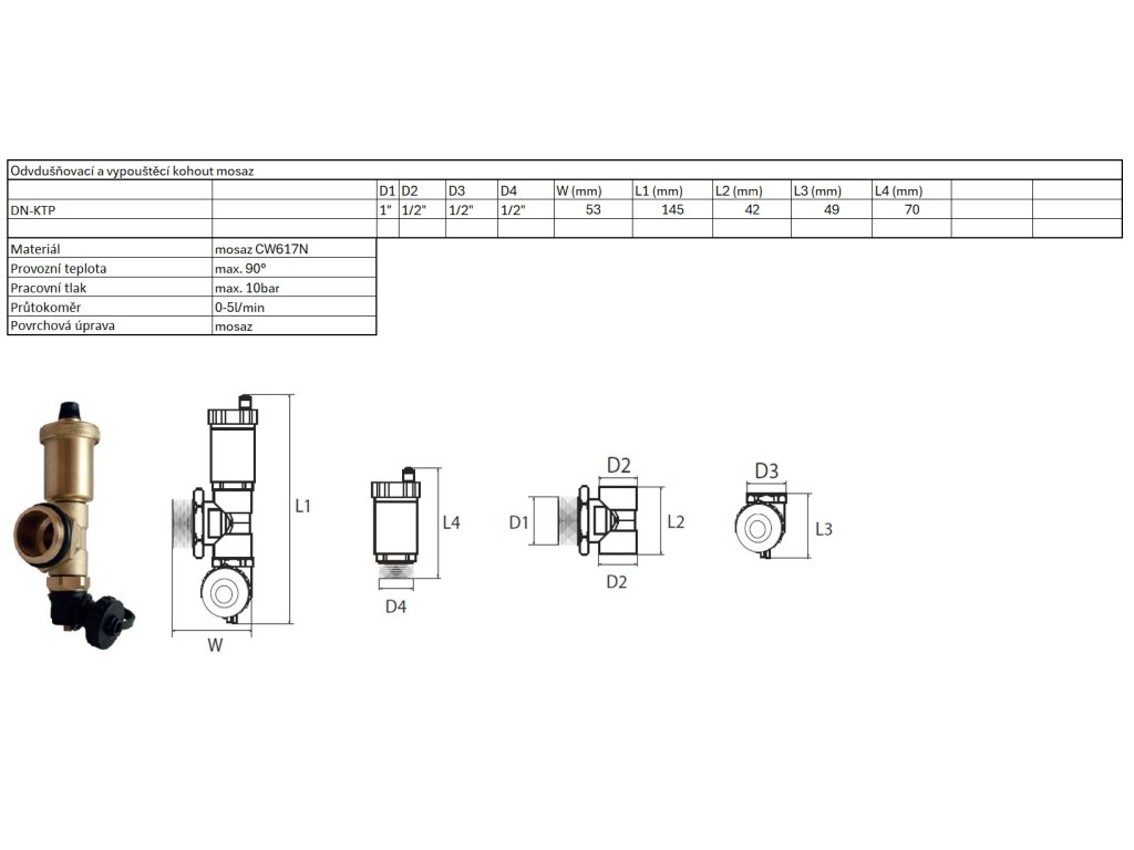 | Odvdušňovací a vypouštěcí kohout mosaz | ||||||||||||