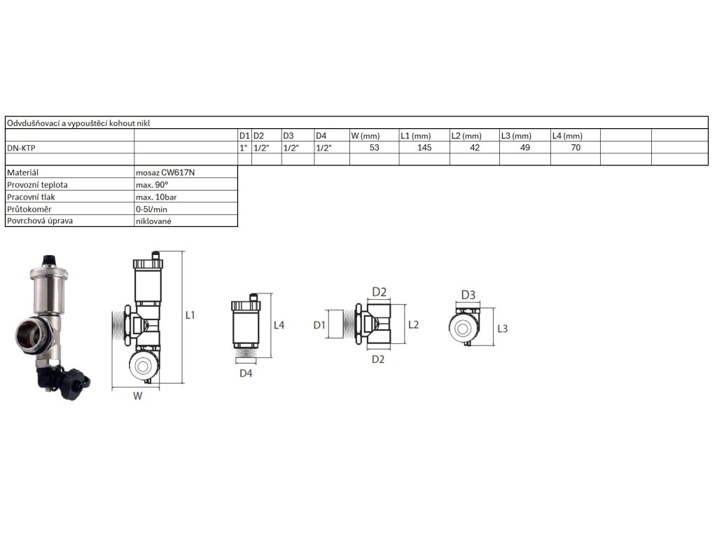 | Odvdušňovací a vypouštěcí kohout nikl | ||||||||||||