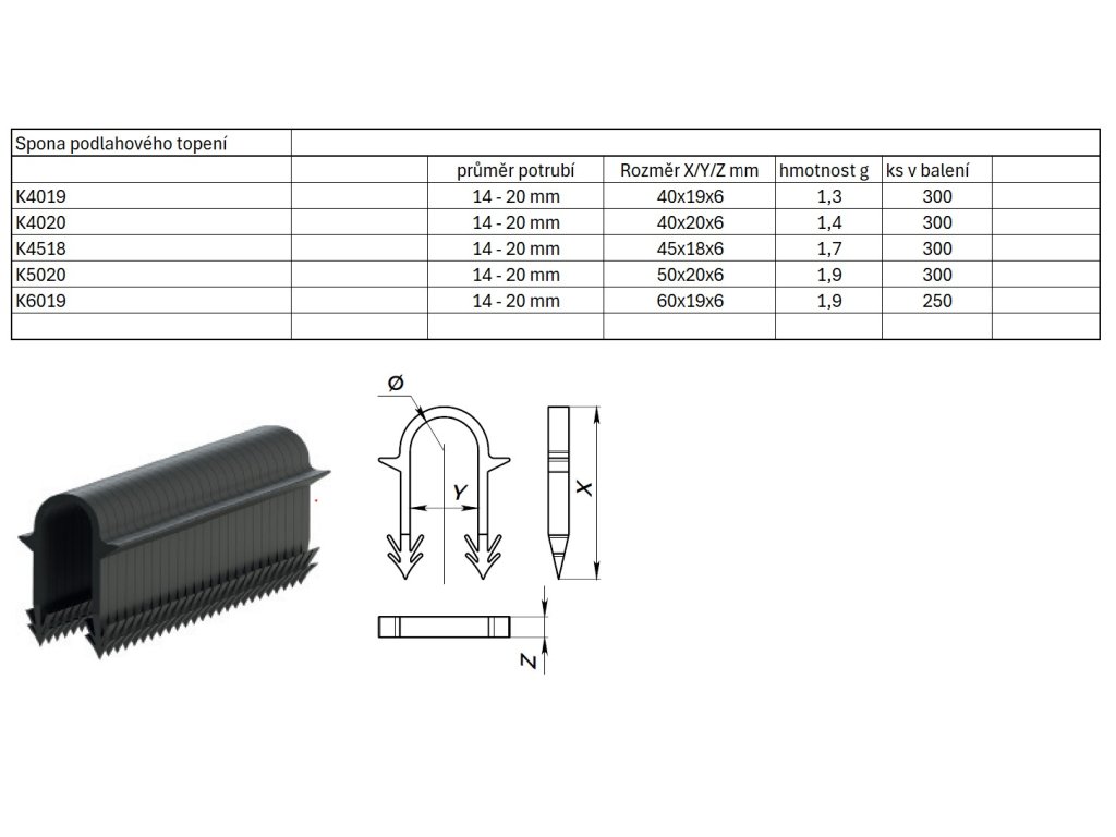 Příchytka podlahové topení. Příchytka se prodává pouze v balení po 300ks