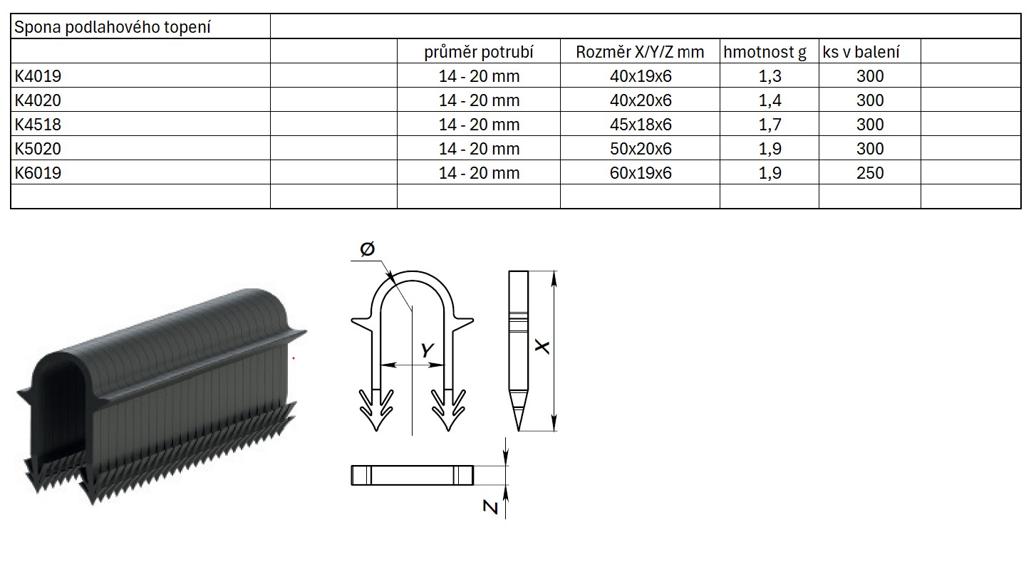 Příchytka podlahové topení. Příchytka se prodává pouze v balení po 300ks.
