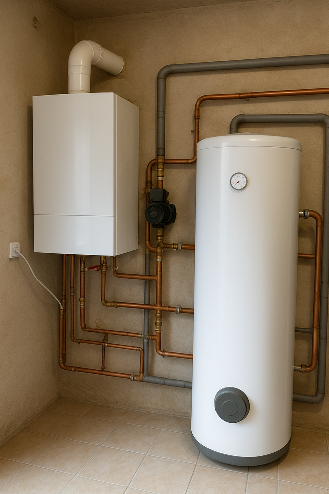 o Kotel nebo tepelné čerpadlo – TUV je ohřívaná teplovodním výměníkem v nádrži. V případě plynového kotle nebo kotle na tuhá paliva můžeme volit menší objem ale topit na vyšší teplotu. Tepelná čerpadla nemají rády ohřívaní vody na příliš vysokou teplotu, je proto lepší volit vyšší objem nádrže.