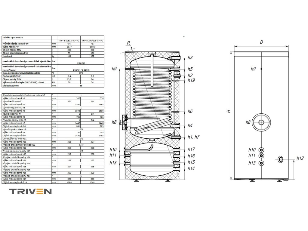 - Materiály nádrže TUV: uhlíkatá ocel s hygienickým vysoce kvalitním smaltem,