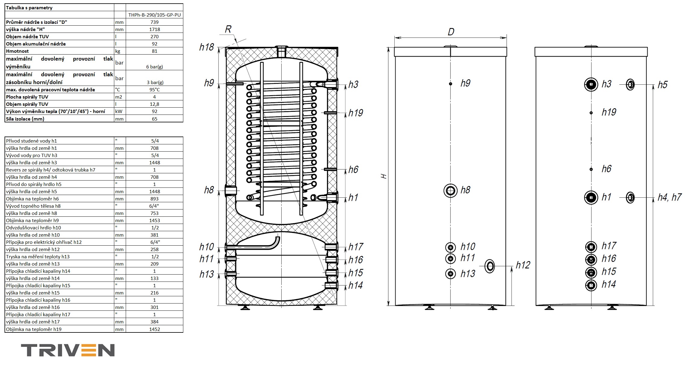 - Materiál nádrže TUV: uhlíkatá ocel s hygienickým smaltem,